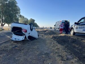 Un automóvil terminó volcado sobre su toldo en la carretera federal, a la altura del kilómetro 132, en dirección sur a norte. El conductor, un hombre de 35 años, perdió el control del vehículo, lo que provocó que saliera del camino y sufriera el incidente.