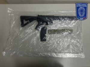 * Un arma larga, abastecida con un cargador de plástico, con 30 cartuchos útiles, calibre 5.56 x 45. mm.