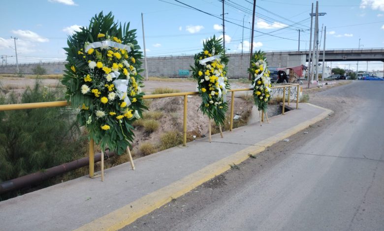 En un hecho poco común en la ciudad, aparecieron coronas de flores en el barandal del puente del dren, justo a un costado del puente de Cielo Vista, los arreglos llamaron la atención de automovilistas y peatones que al pasar por la zona no pudieron evitar voltear a ver la escena.