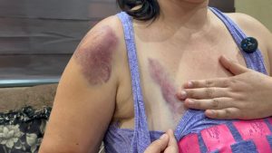 En entrevista, la mujer narró que recibió seis puntadas en la cabeza luego de ser golpeada con un hacha, además de múltiples lesiones en hombro, abdomen y pecho, mismas que obligaron a su hospitalización en el Regional.