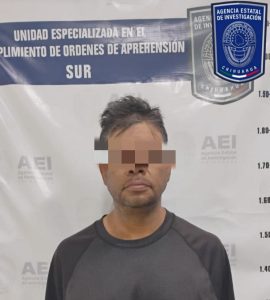 Elementos de la Agencia Estatal de Investigación (AEI) adscritos a la Fiscalía de Distrito Zona Sur, detuvieron a un masculino de nombre Erasmo R.D., de 38 años de edad, quien contaba con una orden de aprehensión por el delito de violencia familiar.