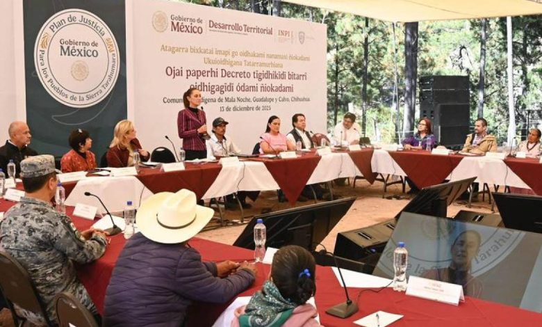 En el mismo acto, Claudia Sheinbaum firmó el decreto presidencial para la restitución de tierras a la comunidad ódami de Malanoche. El documento establece la devolución de 3 mil hectáreas como parte del Plan de Justicia para los Pueblos Indígenas de la Sierra Tarahumara. La mandataria estuvo acompañada por autoridades federales, autoridades tradicionales indígenas y la Gobernadora de Chihuahua, María Eugenia Campos Galván, durante el evento realizado en la comunidad de Santa Tulita.